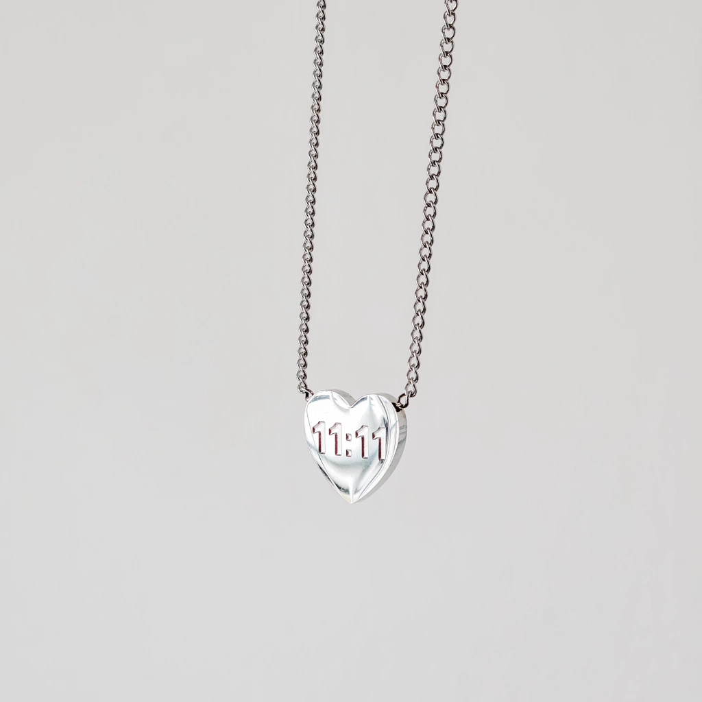Diseño: Colgante en forma de corazón con la inscripción “11:11”.